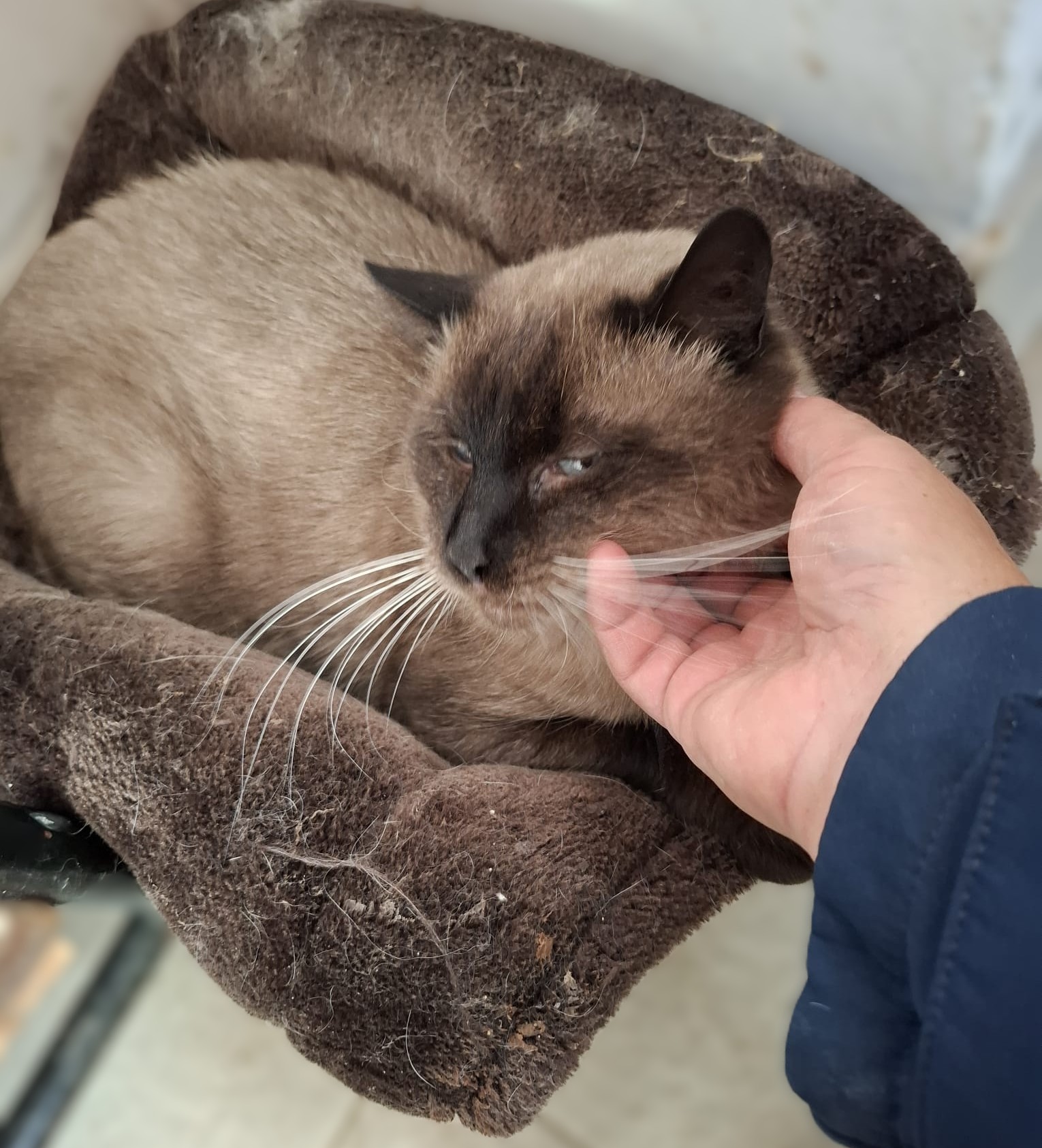 He can live with cat-savvy children, and his ideal home would be indoor-only, cozy, and enriched. A catio or cat-proofed garden would be a wonderful bonus, but it’s not a requirement.